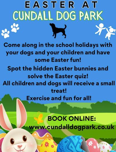 Come and experience the freedom of Cundall Dog Park, where your Dogs can run and play til their heart's content while your children take part in our Kids Easter Quiz and search for Easter Bunnies!